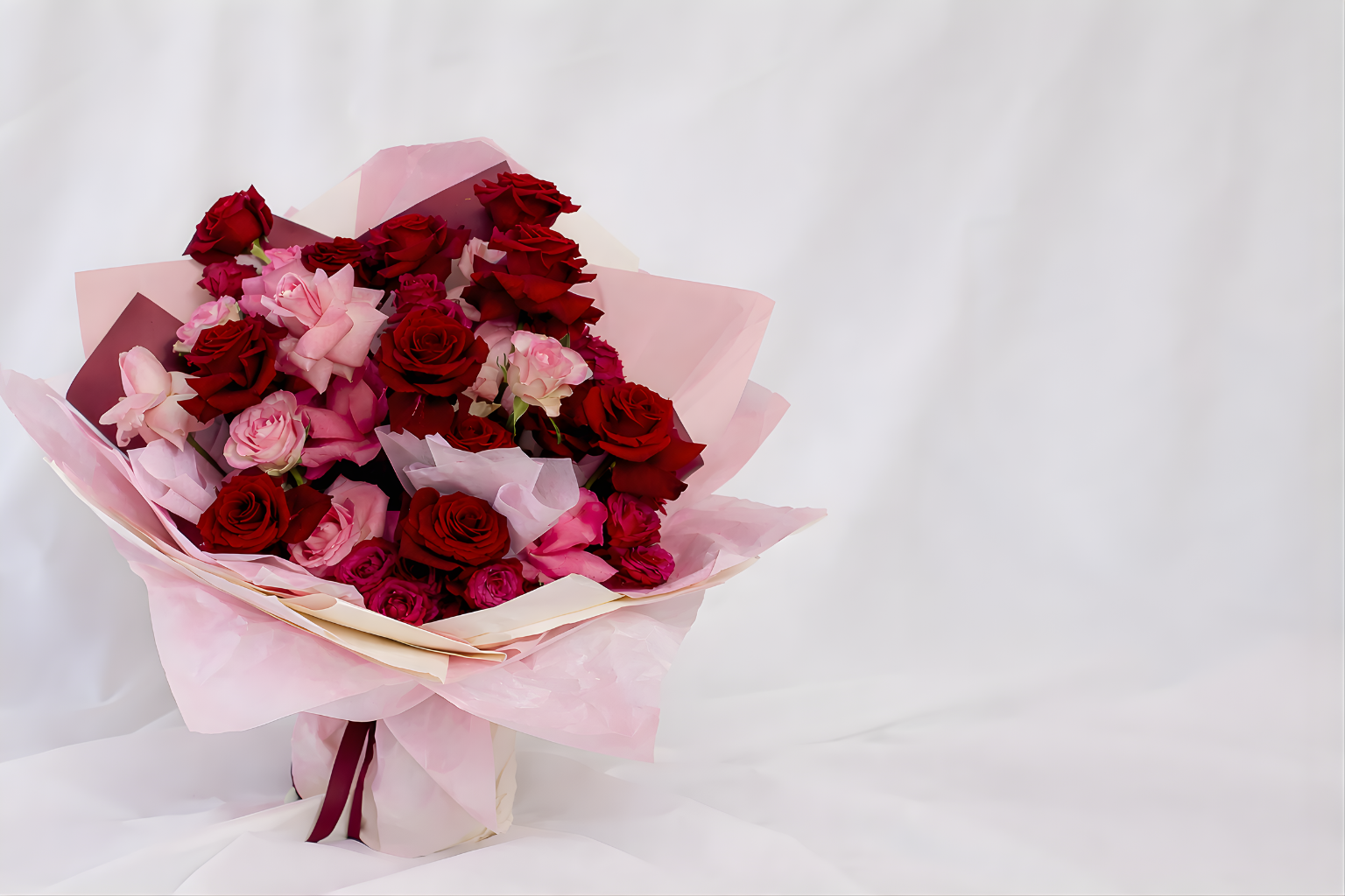 Elk boeket wordt met zorg en precisie samengesteld, waarbij we enkel de mooiste bloemen kiezen en elk detail perfect afstemmen